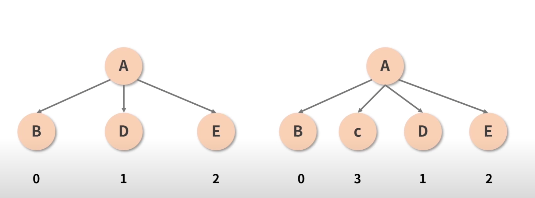 上述过程存在的一个问题,新节点中明明也有D、E,但是我们还是经过了删除、创建,明显浪费。此时,就祭出了我们的key.